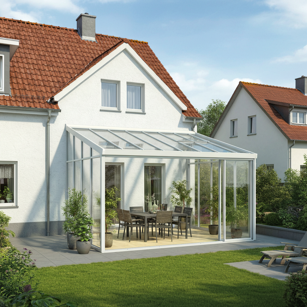 Wir bieten 10 Jahre Garantie auf das Gestell unserer Terrassenüberdachungen und Wintergärten. Auf Glas, Beschichtungen und Zubehör gelten individuelle Garantien.